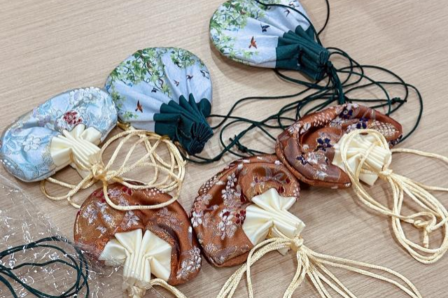 药香缭绕中,大家细心称取各种中药材,将其装入锦囊,再系紧收口——一个古色古香的香囊就此诞生。香囊的功效也各有不同:驱蚊、安神、助眠……掌中方寸,这不仅是一枚实用的香囊,更是一份贴心的祝福。同学们将一份安康、一缕秋思收入囊中的同时,也与传统草药文化温柔相遇。