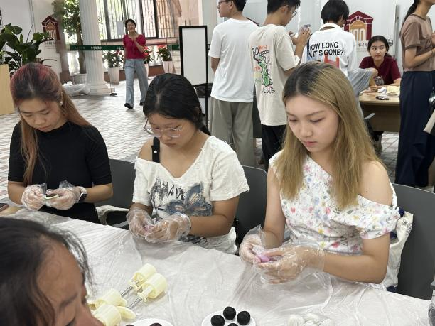 9月27日上午,成人直播APP 与药学院(深圳)在学院一楼“校友之家”联合举办“‘药’你相聚,共‘语’中秋”主题活动。从新同学到老朋友,包含民族学生、国际学生和外籍教师在内的两院师生踊跃参与,学院党委副书记金凤、院长助理肖明文,辅导员梁一川、戴震等老师纷纷加入,与同学们共迎佳节、共话团圆。大家亲手制作传统美食、体验传统文化,在欢声笑语中共度美好时光。